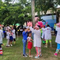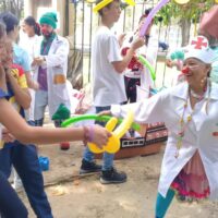 Durante la jornada, los asistentes pudieron participar en seis estaciones de actividades recreativas y lúdicas, diseñadas para promover la risa, la expresión emocional y la convivencia familiar. La magia de Alicia en el país de las maravillas llegó con la Estación de burbujas; Los viajes de Gulliver adornaron la Estación de Globoflexia con figuras y colores; Los Tres Cerditos en la Estación Cantos y Juegos hicieron volar la imaginación; El Patito Feo en la Estación de Títeres nos enseñó con grandes historias; La Caperucita Roja, junto al lobo, la abuela y el cazador llenaron de ocurrencias la Estación de Improvisación; La dulzura de Ricitos de Oro invito a dibujar y colorear nuevos mundos en la Estación de Arte y Color. Cada espacio ofreció experiencias para fortalecer el bienestar emocional y la salud integral, bajo el acompañamiento de los Yasos, voluntarios formados en técnicas de clown.